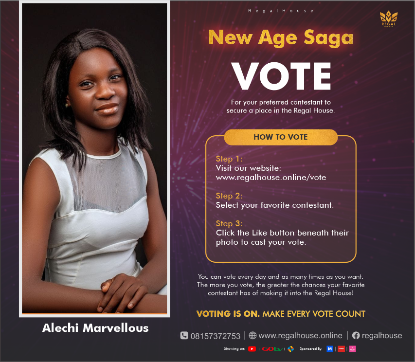 Alechi Marvellous I’m Alechi Marvellous and I’m excited to announce my aspiration to become one of Regal house mate! Your votes will make me one of the Regal House mates. ❤️ Like Usage: 0/20 Likes: ️ Show Likes