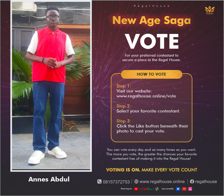 Annes Abdul I’m Annes Abdul and I’m excited to announce my aspiration to become one of Regal house mate! Your votes will make me one of the Regal House mates. ❤️ Like Usage: 0/20 Likes: ️ Show Likes