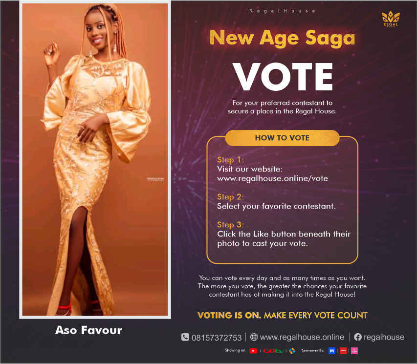 I’m Aso Favour and I’m excited to announce my aspiration to become one of Regal house mate!