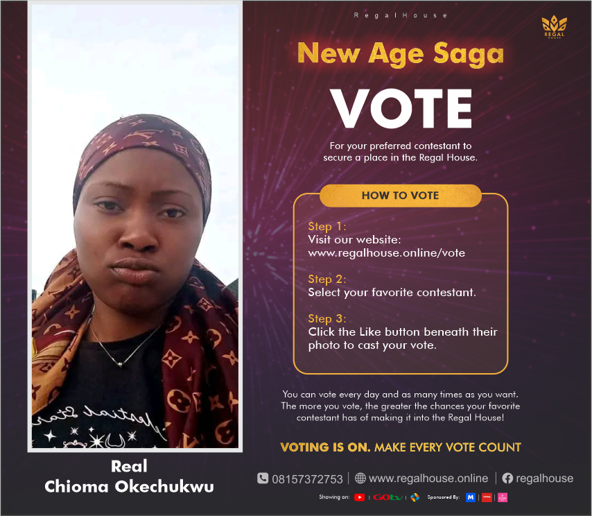 Chioma Okechukwu I’m Real Chioma Okechukwu and I’m excited to announce my aspiration to become one of Regal house mate! Your votes will make me one of the Regal House mates. ❤️ Like Usage: 0/20 Likes: ️ Show Likes