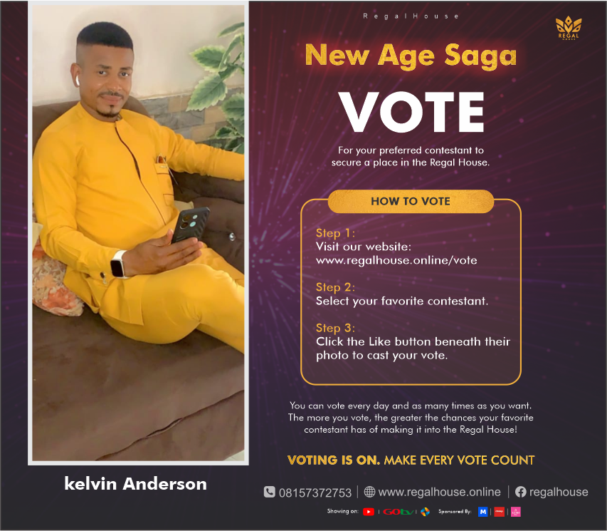 kelvin Anderson I’m kelvin Anderson and I’m excited to announce my aspiration to become one of Regal house mate! Your votes will make me one of the Regal House mates. ❤️ Like Usage: 0/20 Likes: ️ Show Likes