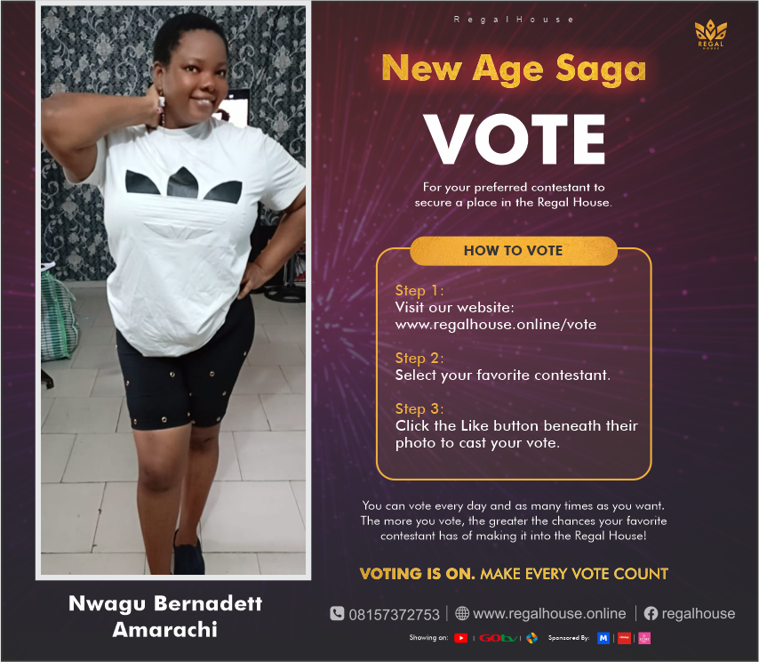 Nwagu Bernadett I’m Nwagu Bernadett Amarachi and I’m excited to announce my aspiration to become one of Regal house mate! Your votes will make me one of the Regal House mates. ❤️ Like Usage: 0/20 Likes: ️ Show Likes
