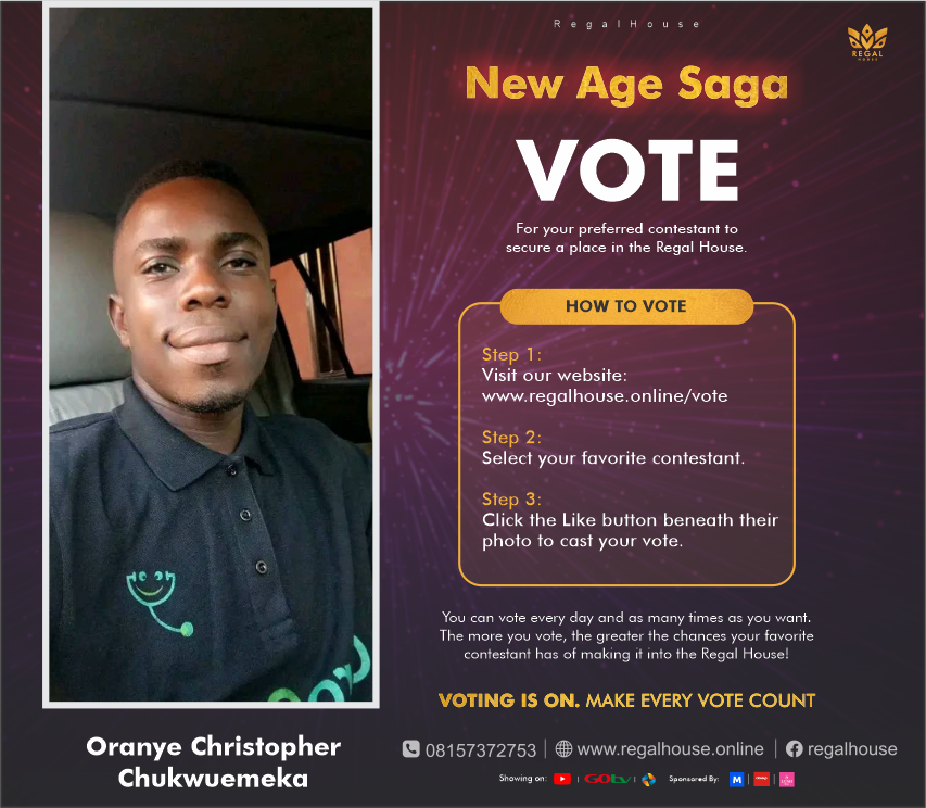 I’m Oranye Christopher Chukwuemeka  and I’m excited to announce my aspiration to become one of Regal house mate!