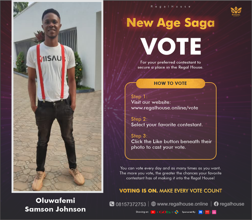 I’m Oluwafemi Samson Johnson and I’m excited to announce my aspiration to become one of Regal house mate!