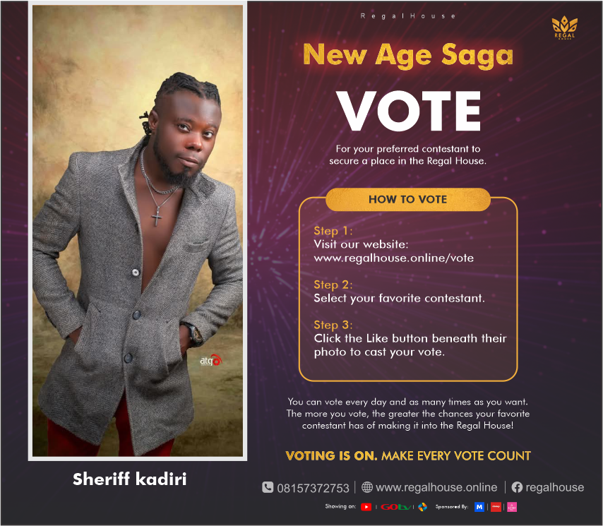 Sheriff kadiri I’m Sheriff kadiri and I’m excited to announce my aspiration to become one of Regal house mate! Your votes will make me one of the Regal House mates. ❤️ Like Usage: 0/20 Likes: ️ Show Likes