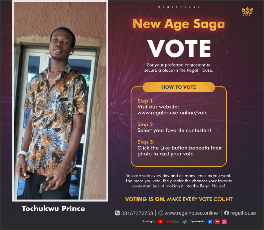I’m Tochukwu Prince and I’m excited to announce my aspiration to become one of Regal house mate!